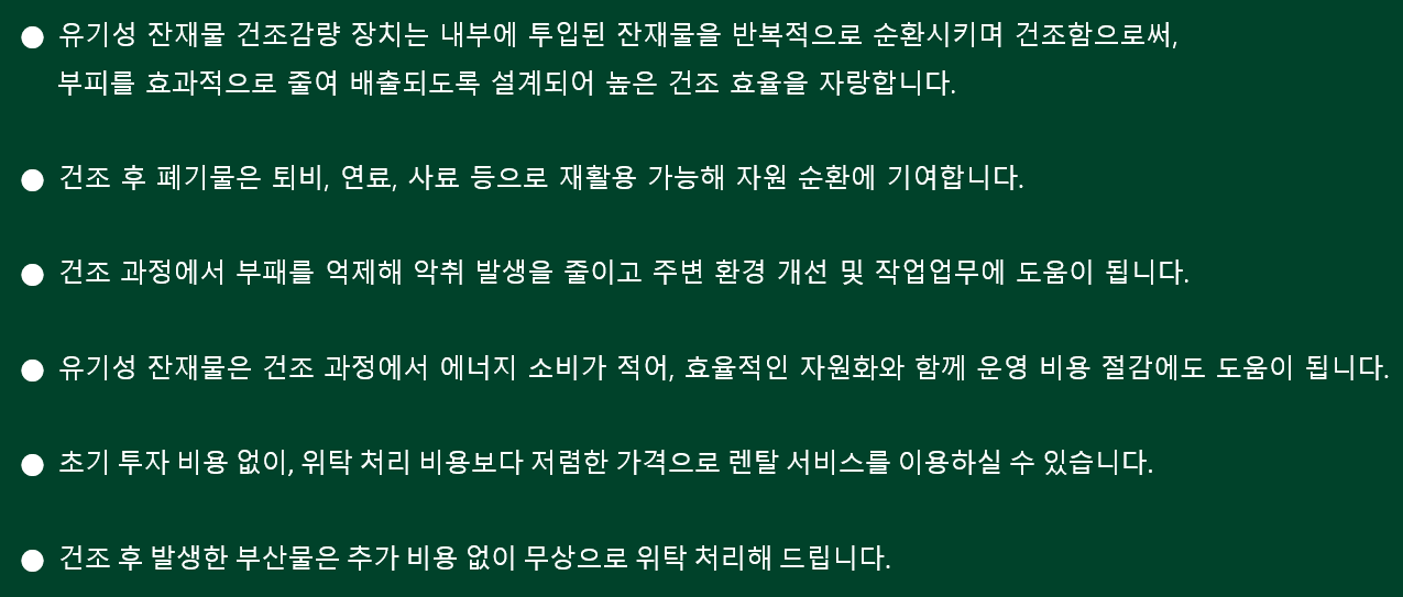 - 악취없음 / 잔고장 없음 / 모든 종류 유기성폐기물 처리.